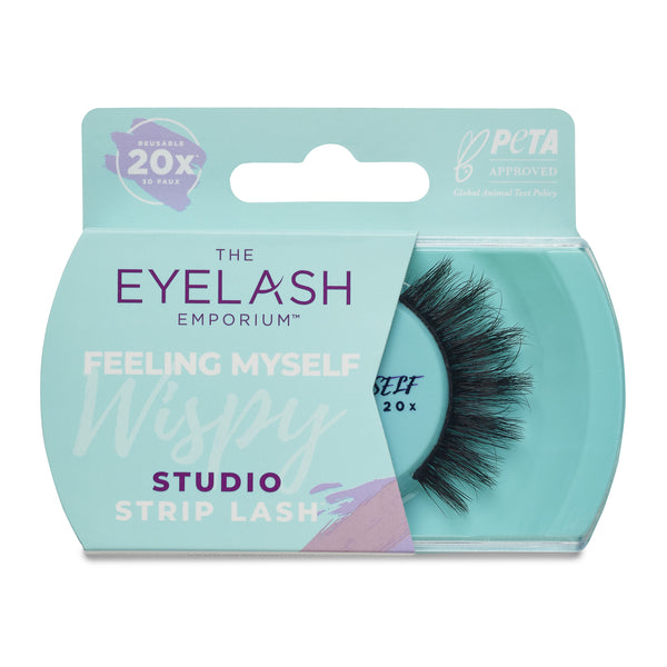 Our Feeling Myself Studio Strip Lash is 3D Faux, Vegan and Reusable 20x. Loved by celebs and MUA's, our lightweight, flexible lash band ensures easy application without feeling heavy on the eye. Layered with varying lengths of tapered lashes, this style gives you a wispy yet full finish to really open out the eye. Developed by makeup artists, for makeup artists.