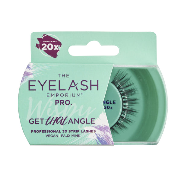 Get That Angle is a more subtle, yet glam, fluttery lash that will especially suit upturned or close-set eyes due to it being slightly winged on the outer edges. Each lash in our studio range are synthetic, 3D, luxury strip lashes that are reusable up to 20 wears when cared for correctly.