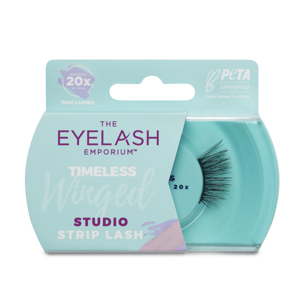 Timeless is a stunning winged half lash which elongates the eye upwards, the fluffy fibres with a gradual wing create an iconic almond-shaped stare.
