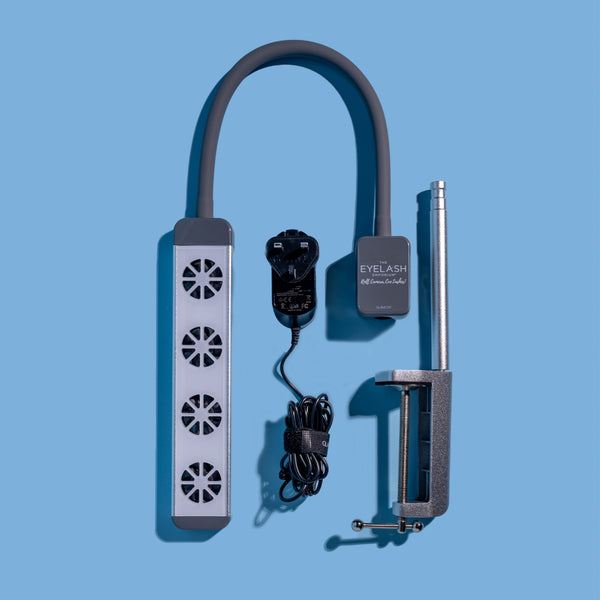 The Glamcor Flow is a modern exhaust fan and dryer in one. It can redirect toxic fumes from the air and improve the air quality. In the lash industry, Glamcor lamps are known as the best of the best which is why we use them ourselves during semi-permanent treatments and training.