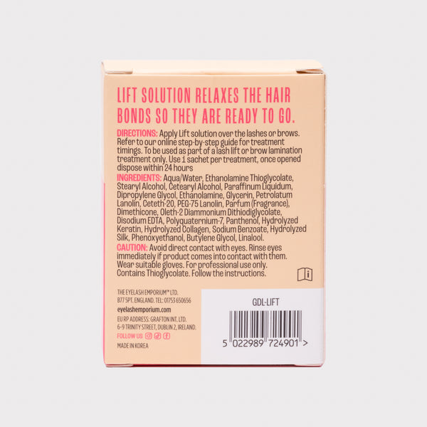 Start every lash lift and brow lamination with our expertly formulated Lift Solution, designed to gently soften and reshape each hair, setting the foundation for beautifully lifted lashes and laminated brows.