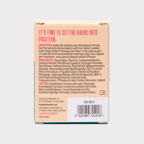 Lock in the perfect shape with our Set Solution, the crucial second step in every lash lift and brow lamination treatment. Formulated to rebuild the disulfide bonds within each hair, this solution ensures your client's lashes stay beautifully lifted, and brows remain perfectly styled.