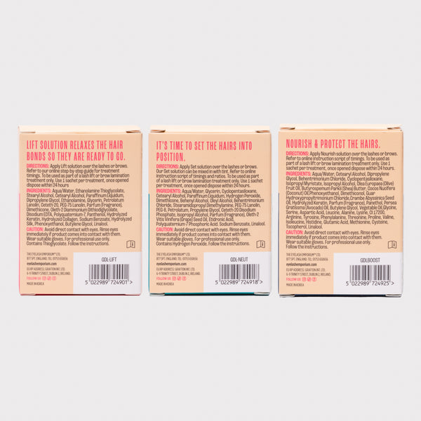 Give your clients the ultimate lift with our Lash Lift & Brow Lamination Trio Kit, designed to create beautifully lifted lashes and perfectly styled brows with results that last up to eight weeks. This easy-to-use professional system includes three essential steps: Lift, Set, and Nourish, working together to reshape, lock in, and condition hair for long-lasting, eye-catching results.
